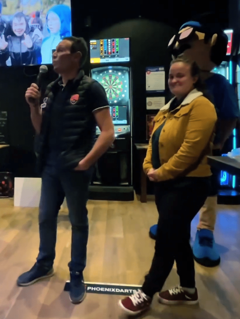 Remise de chèque par Albert SALGUEIRO, Président de l’ASPTT Clermont Omnisports, Benjamin TOURRET, Directeur de l’ASPTT Clermont Omnisports et Agnés BRIAT, adjointe associations, sports, culture, patrimoine et festivités à la mairie d’Aubière.